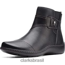 Clarks mulheres Clarks feminino cora tropic couro botins metálicos couro preto RJZRN1682 couro preto