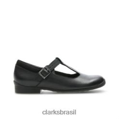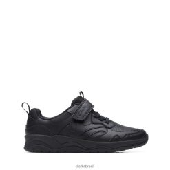 Clarks crianças clarks de couro preto jnr f fit RJZRN4934 couro preto
