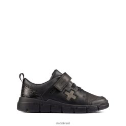 Clarks crianças Clarks de couro preto codificam couro preto infantil brilhante RJZRN5899 couro preto