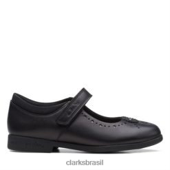 Clarks crianças Clarks de couro preto codificam couro preto infantil brilhante RJZRN5899 couro preto