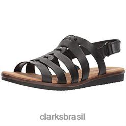Clarks mulheres sandália clarks feminina de couro preto com salto alto RJZRN1107 couro preto