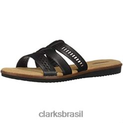 Clarks mulheres sandália clarks feminina kele wil low slide couro preto RJZRN2042 couro preto