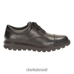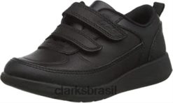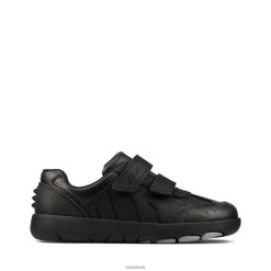 Clarks crianças clarks rex stride k de couro preto RJZRN3832 couro preto