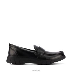Clarks unissex Clarks de couro preto branch slip juventude couro preto RJZRN5968 couro preto