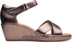 Clarks mulheres sandália feminina clarks reyna twist RJZRN2299 metálico