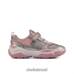 Clarks crianças clarks prateado metálico ti ny mist fst f fit RJZRN4611 prata metálico