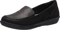 Clarks mulheres Clarks mocassim feminino ayla river preto com estampa de cobra sintética RJZRN1554 sintético com estampa de cobra preta
