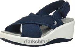 Clarks mulheres Sandália Clarks Feminina Step Cali Cove Azul Marinho RJZRN2379 têxtil da marinha