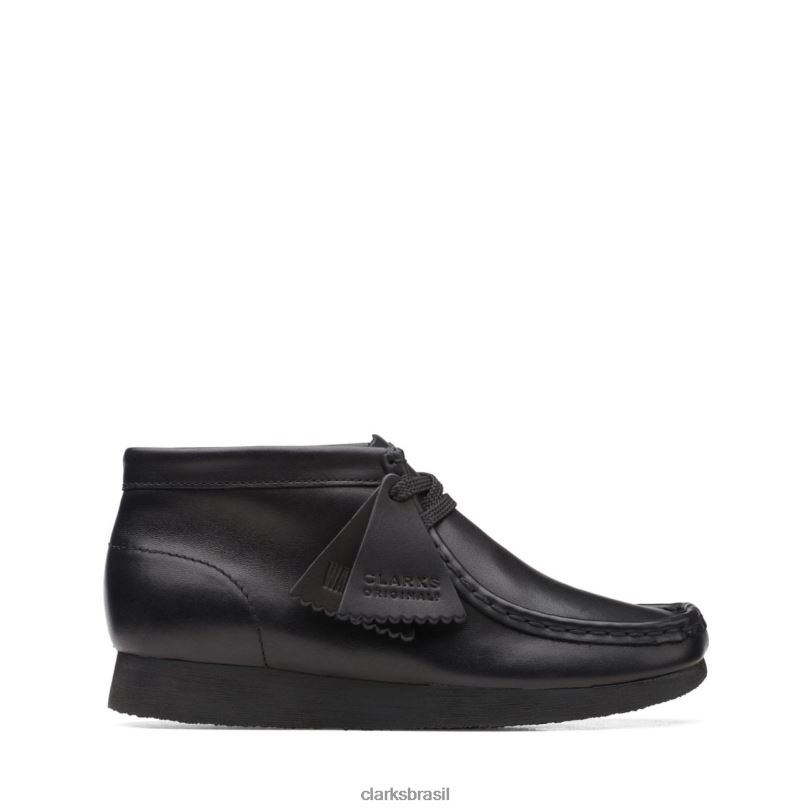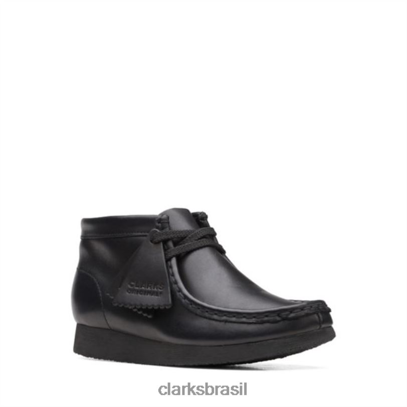 Clarks crianças bota wallabee mais velha couro preto clarks de couro preto RJZRN5926 couro preto