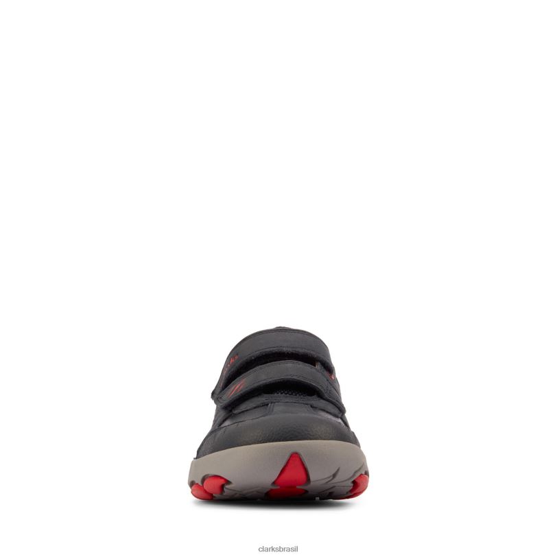 Clarks crianças clarks azul marinho/couro vermelho rex play k RJZRN3841 couro marinho/vermelho