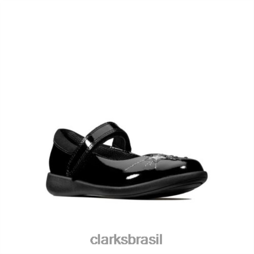 Clarks crianças clarks black patente etch faísca inf f fit RJZRN4641 patente preta