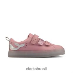 Clarks crianças Clarks de couro rosa ti ny mist fst g fit RJZRN4608 couro rosa