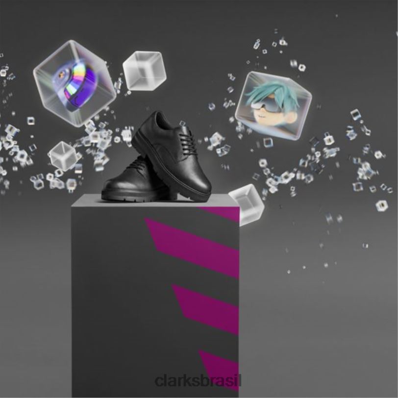 Clarks crianças clarks prague lace juventude couro preto couro preto RJZRN5810 couro preto