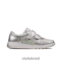 Clarks crianças clarks prateado metálico ti ny mist fst f fit RJZRN4611 prata metálico