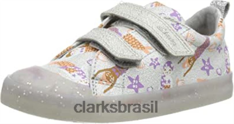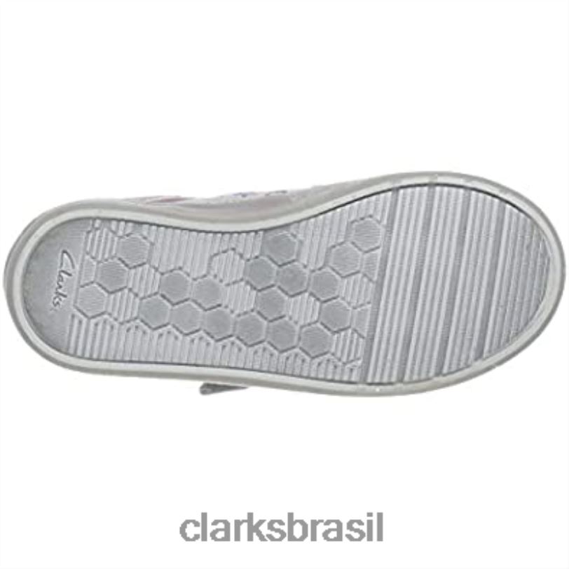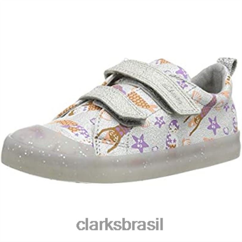 Clarks crianças Clarks Silver Canvas bebê meninas foxing print tênis infantil RJZRN1905 tela prateada