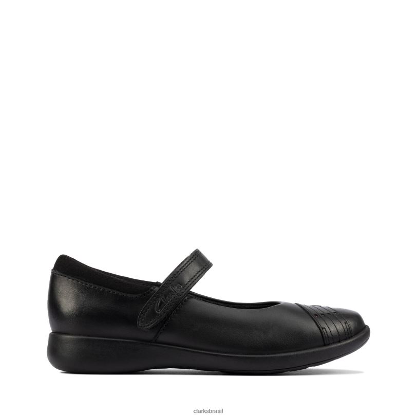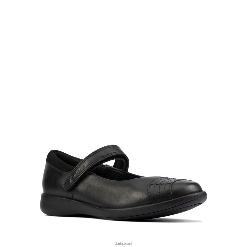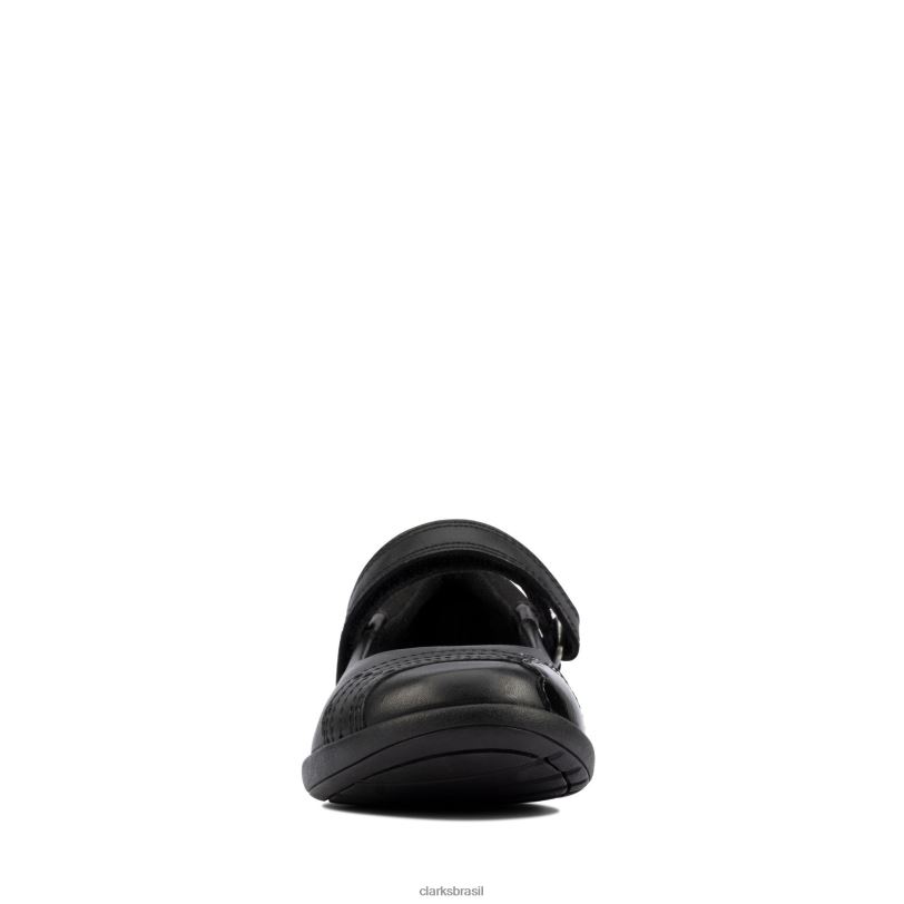 Clarks crianças couro preto gravado feixe k clarks RJZRN3780 couro preto