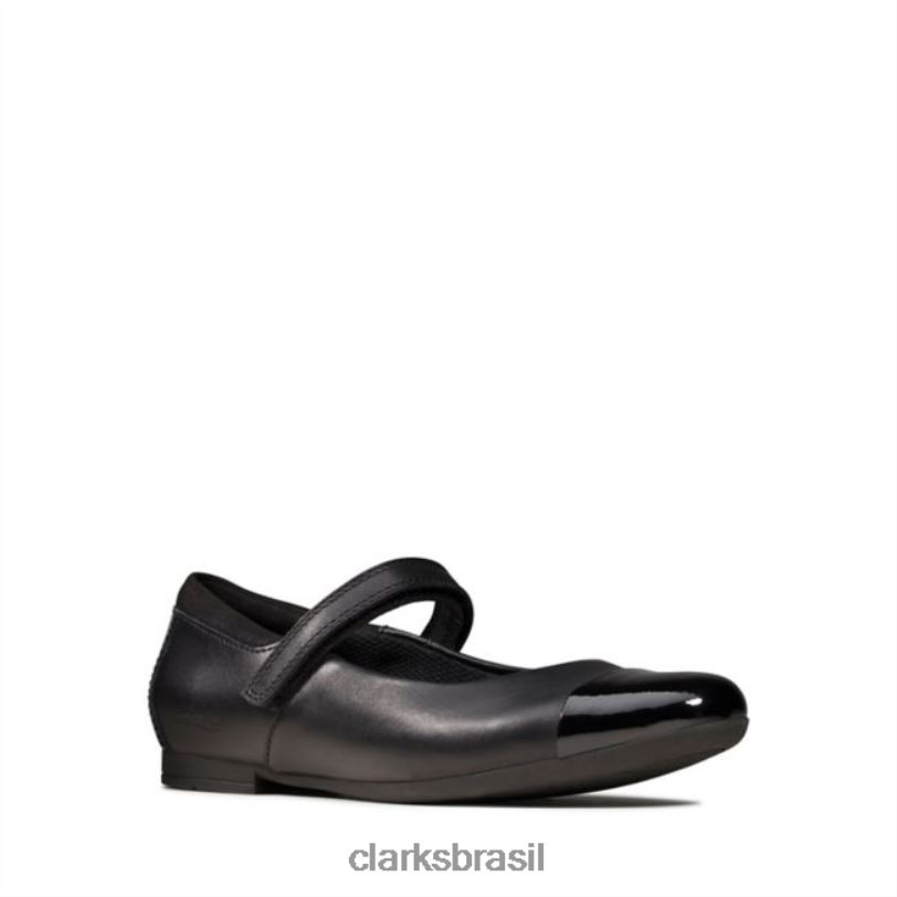 Clarks crianças couro preto scala gem garoto couro preto clarks RJZRN5852 couro preto