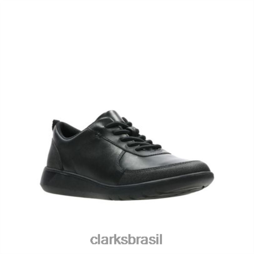 Clarks crianças couro preto scape street jnr e fit clarks RJZRN4900 couro preto