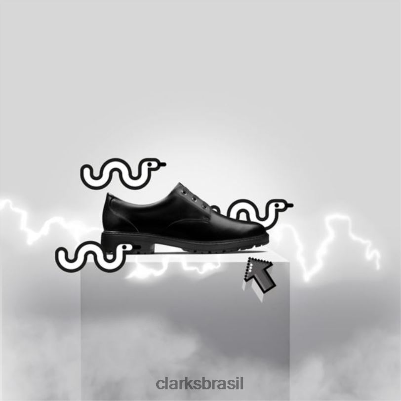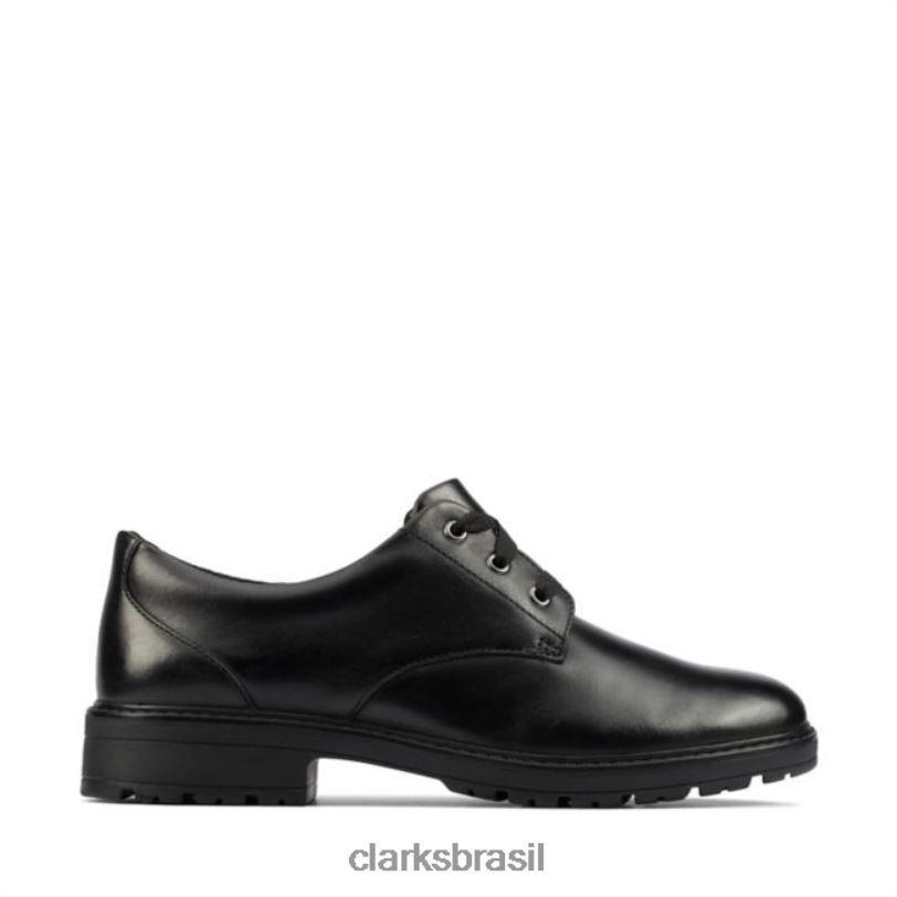 Clarks crianças dempster renda juventude couro preto clarks couro preto RJZRN5871 couro preto