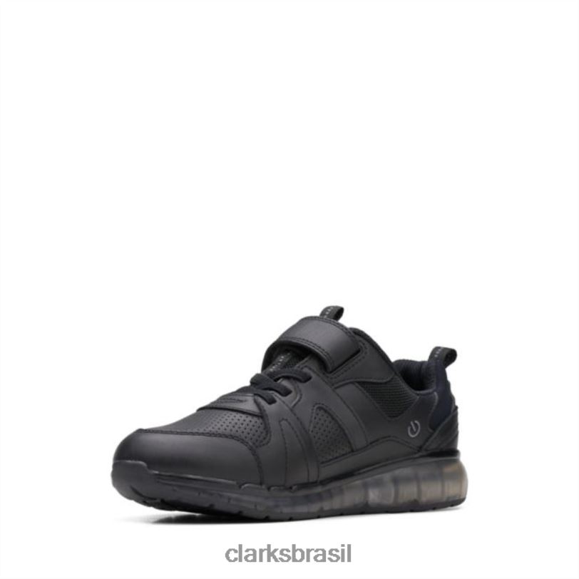 Clarks crianças faísca feixe mais velho couro preto clarks couro preto RJZRN5965 couro preto