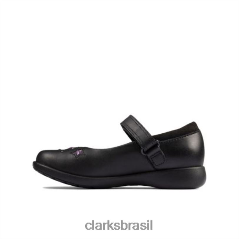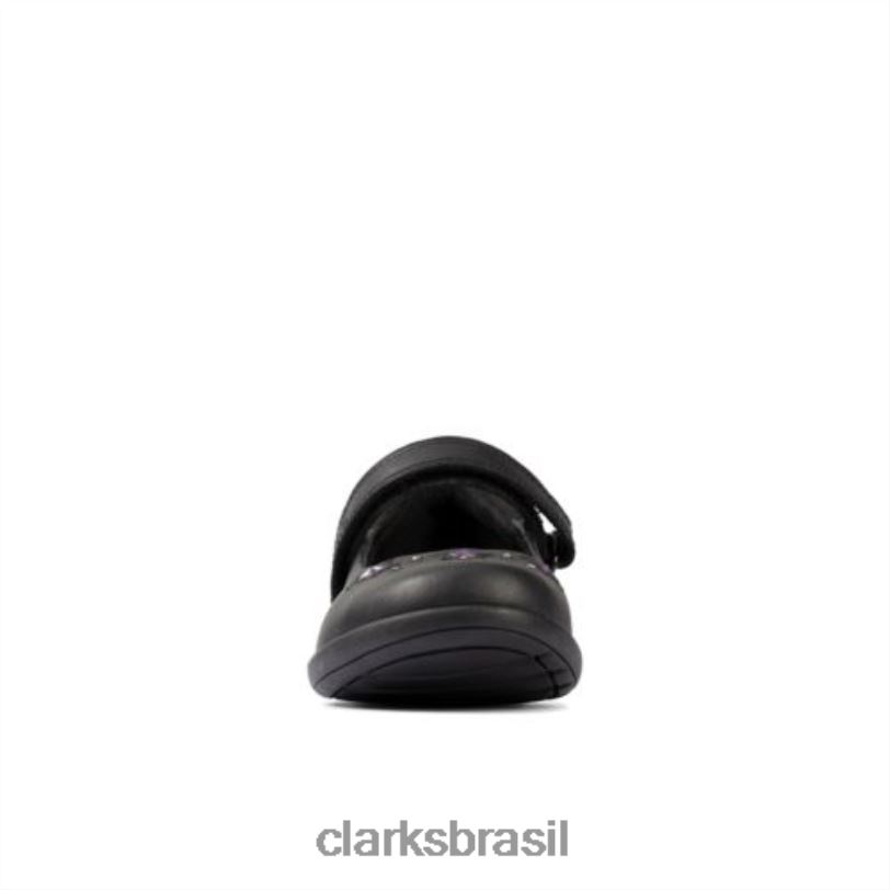 Clarks crianças gravar brilhante inf g fit clarks couro preto RJZRN4639 couro preto