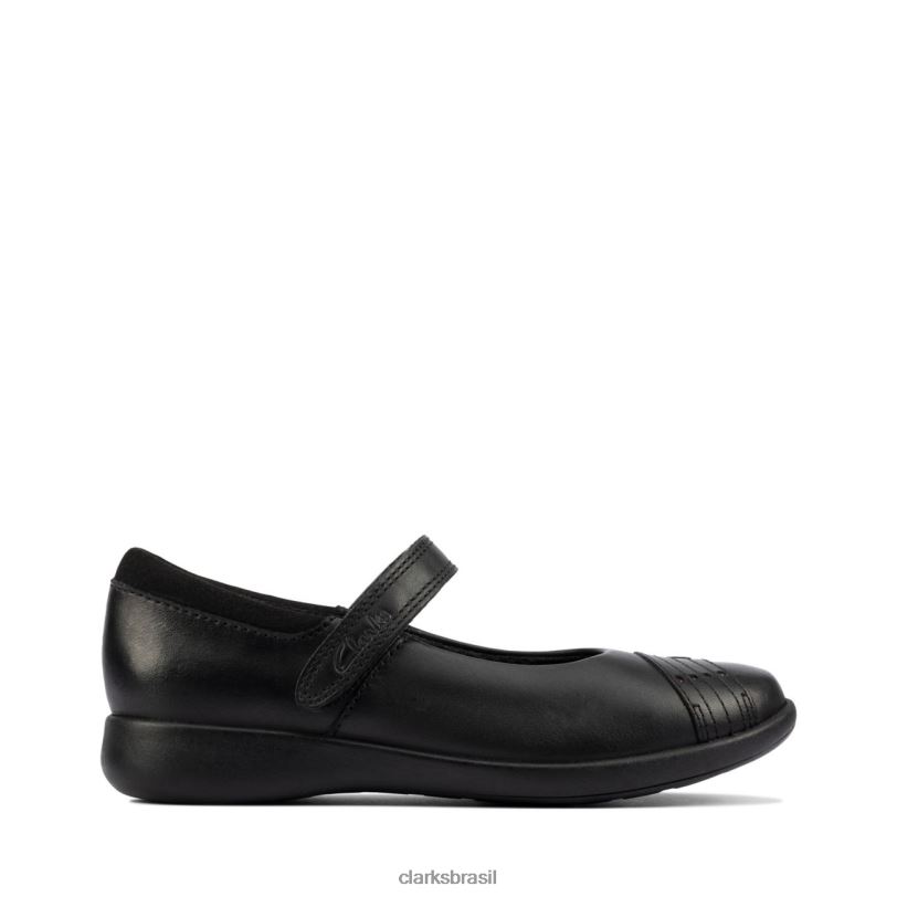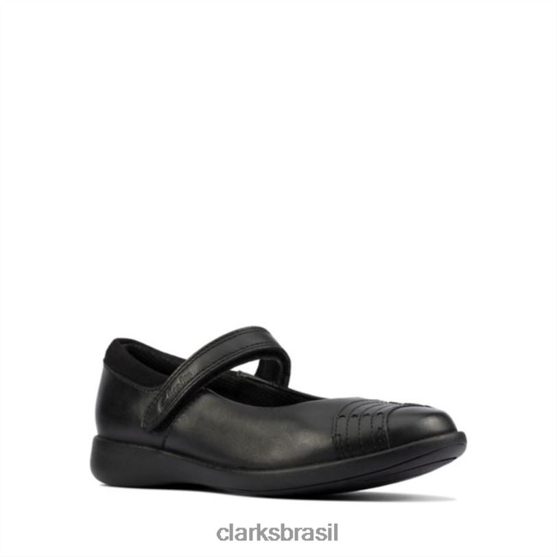 Clarks crianças gravar feixe garoto couro preto clarks couro preto RJZRN5855 couro preto
