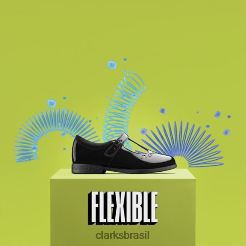 Clarks crianças passo mágico lo garoto patente preta clarks patente preta RJZRN5807 patente preta