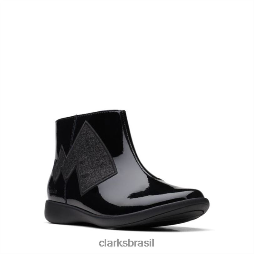 Clarks crianças clarks black patente etch faísca inf f fit RJZRN4641 patente preta
