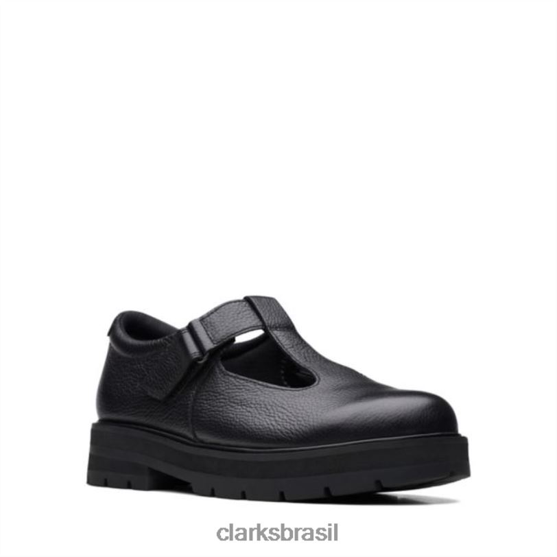 Clarks crianças praga brill juventude couro preto clarks couro preto RJZRN5813 couro preto