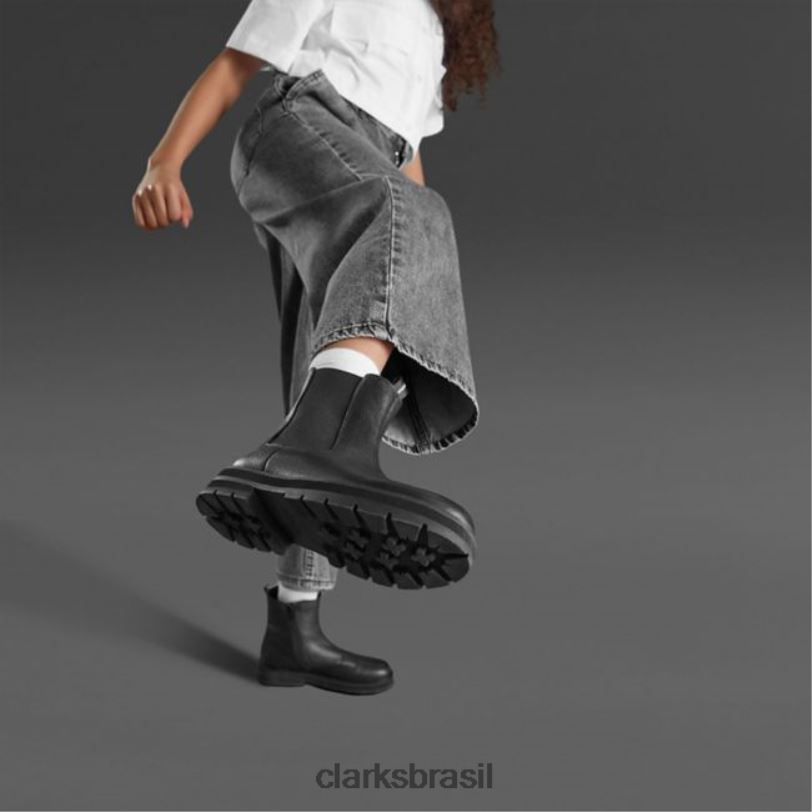 Clarks crianças praga mar juventude couro preto couro preto clarks RJZRN5734 couro preto
