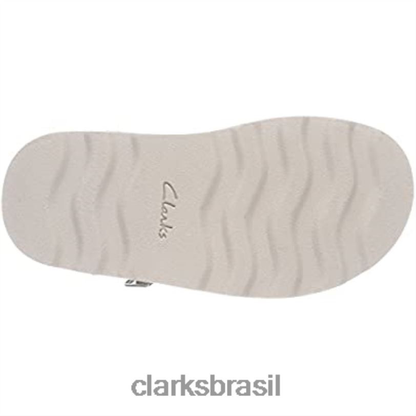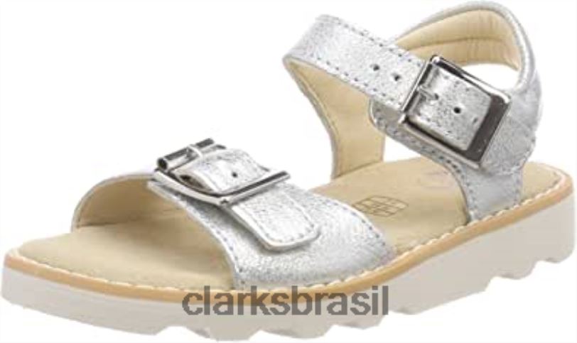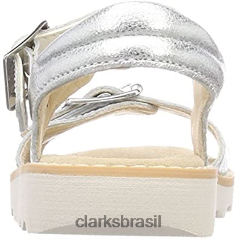 Clarks crianças sandálias femininas coroa flor t tipo estilingue clarks couro prateado RJZRN1181 couro prateado