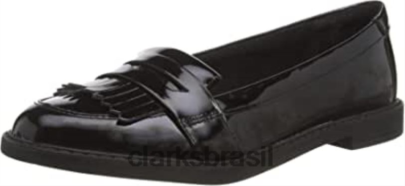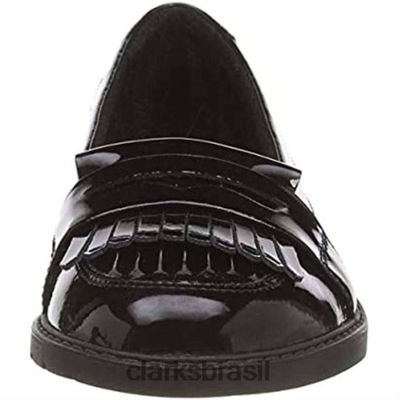 Clarks crianças scala gem y bailarinas femininas clarks couro preto RJZRN997 couro preto