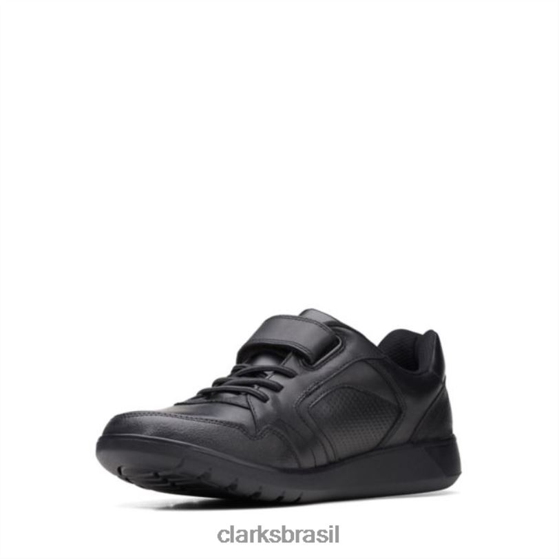 Clarks crianças scape brilhante juventude couro preto couro preto clarks RJZRN5942 couro preto