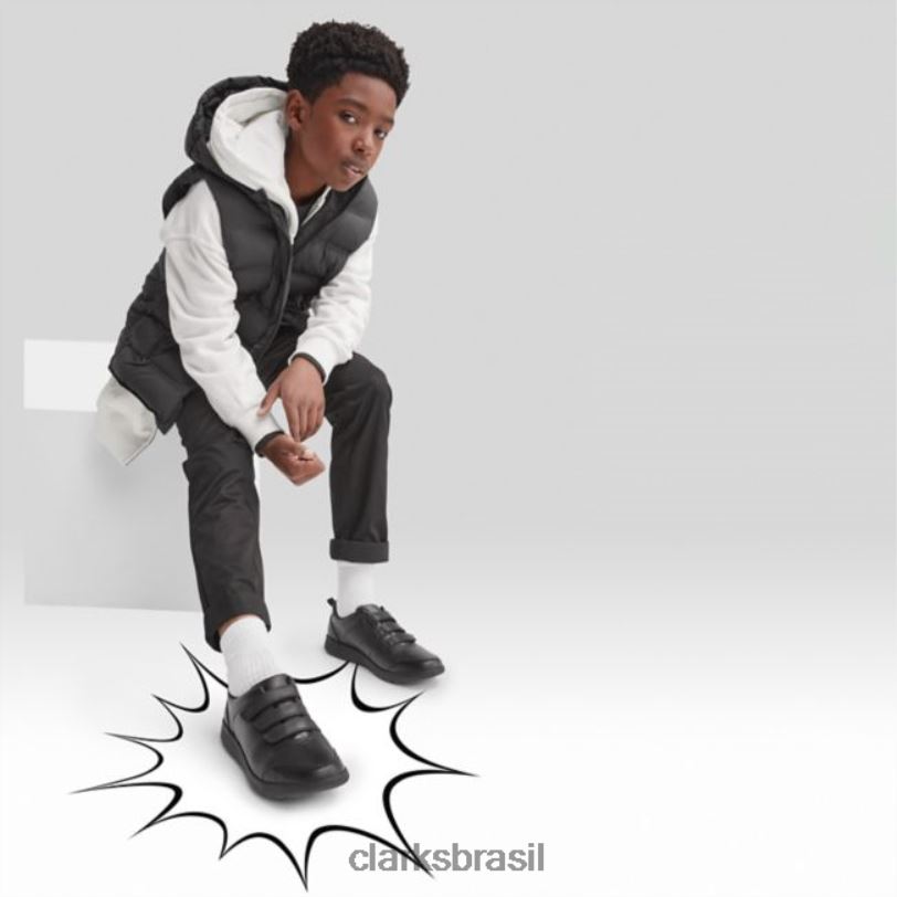 Clarks crianças scape sky juventude couro preto clarks couro preto RJZRN5831 couro preto