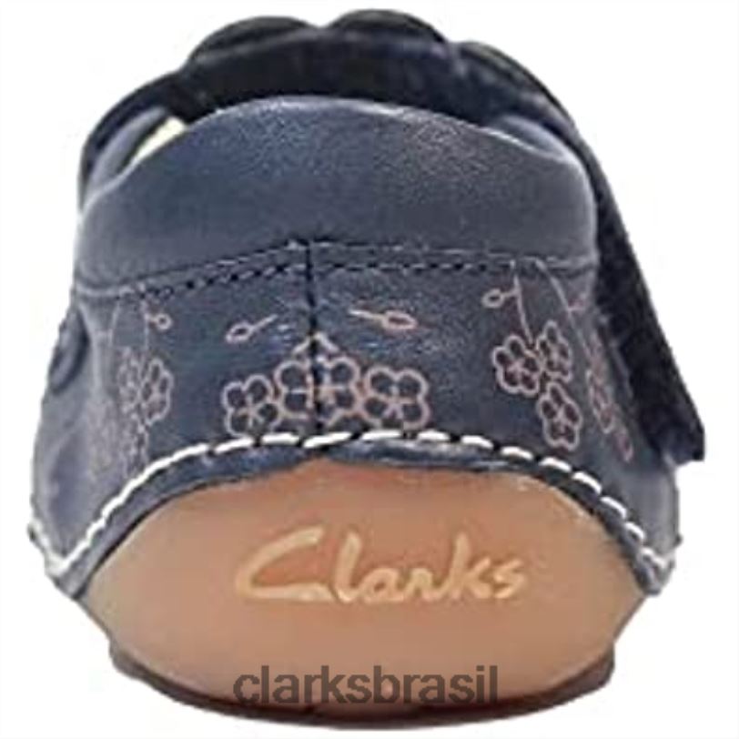 Clarks crianças ti ny flora criança marinho combi couro meninas pré walker sapatos f largura marinho combi clarks RJZRN158 f largura marinha combi