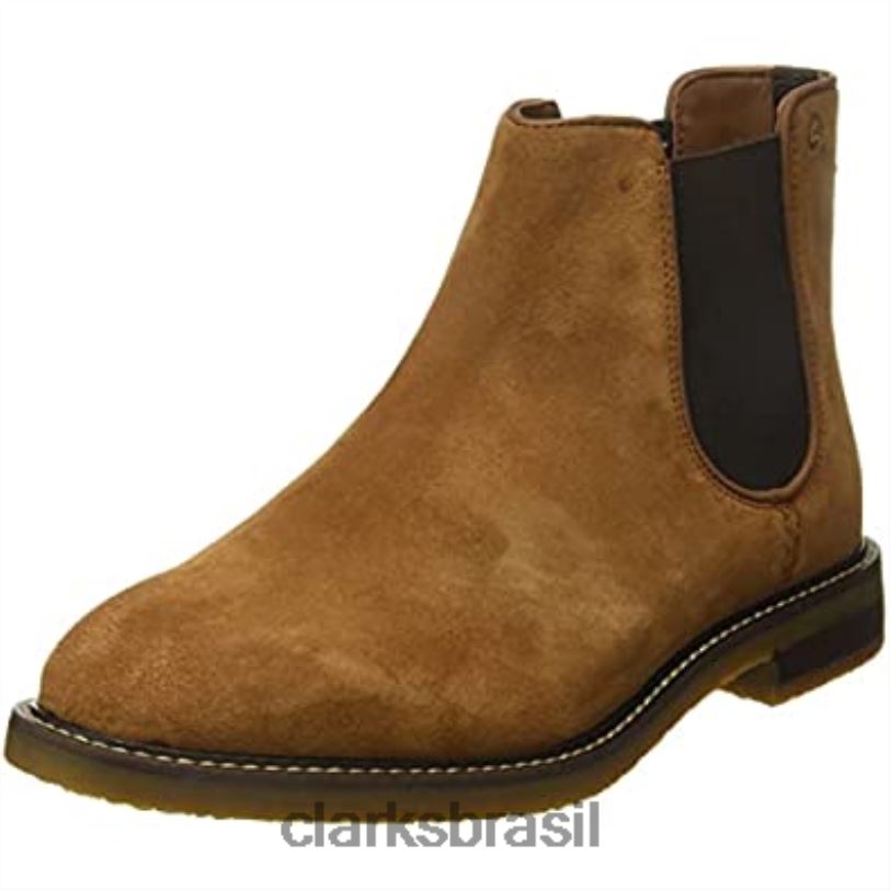 Clarks homens bota jaxen chelsea masculina camurça marrom clarks RJZRN2598 camurça marrom