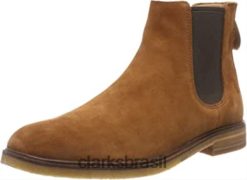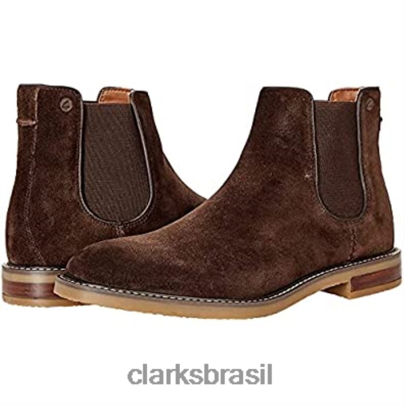 Clarks homens bota jaxen chelsea masculina camurça marrom clarks RJZRN2598 camurça marrom
