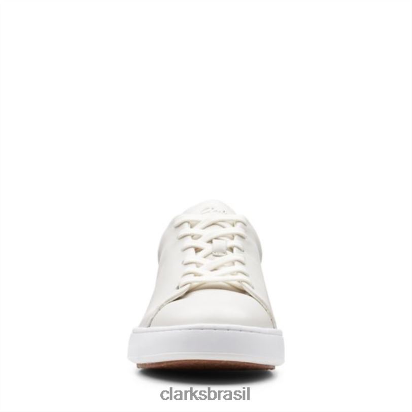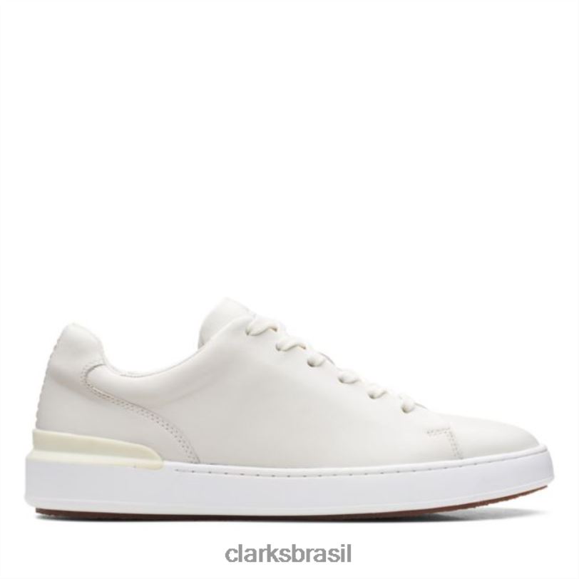 Clarks homens Clarks Couro Branco Court Lite Lace Couro Branco RJZRN5521 couro branco