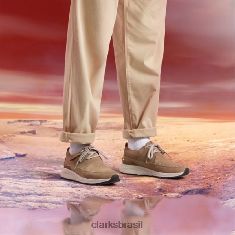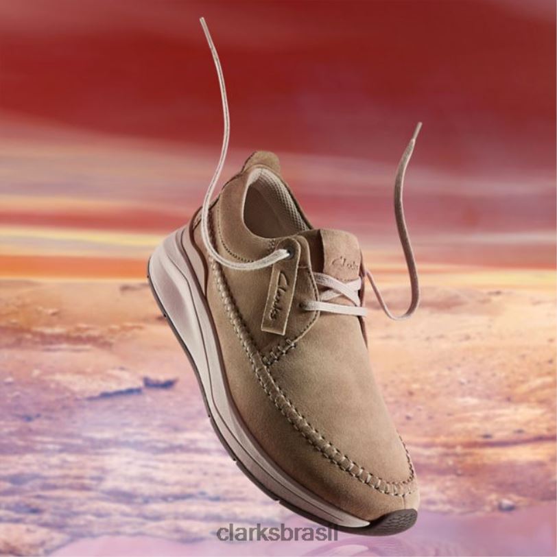 um toque esportivo em um favorito de Clarks – conheça nosso sapato de tecido litoral. com parte superior em camurça areia escura para uma sensação premium