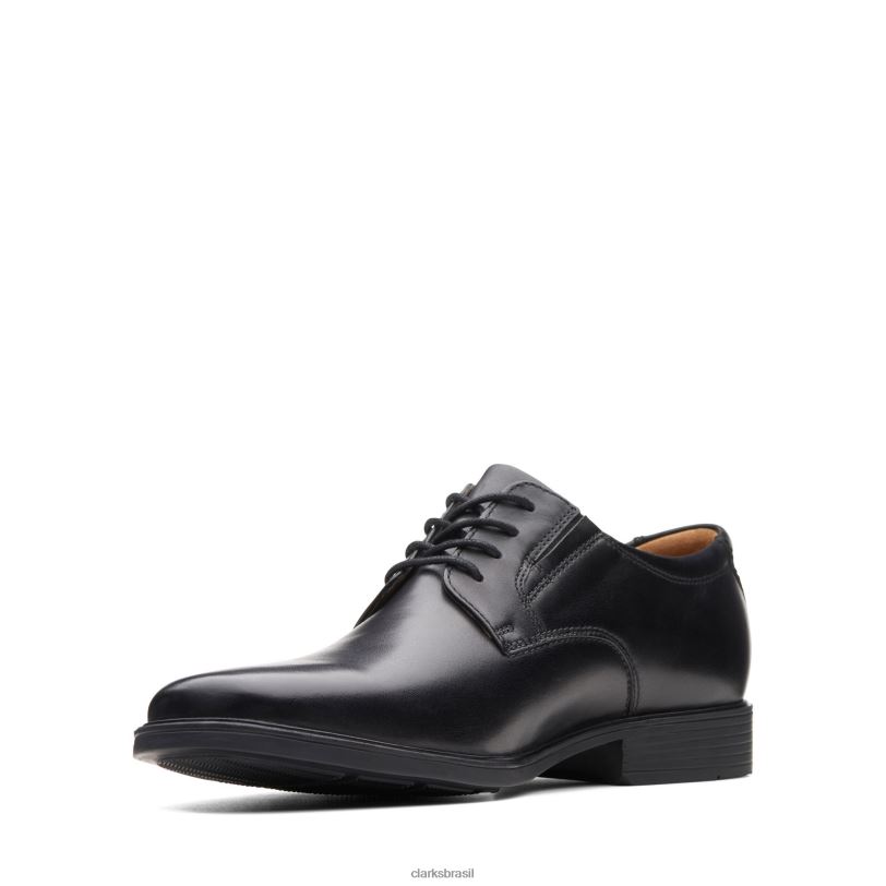 Clarks homens clarks de couro preto tilden liso RJZRN3467 couro preto