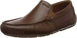 uma silhueta clássica slip-on que fala do DNA e do artesanato da Clarks Design. couro marrom mogno apresenta detalhe de ventilação elástica dupla para facilitar a entrada do pé na parte superior