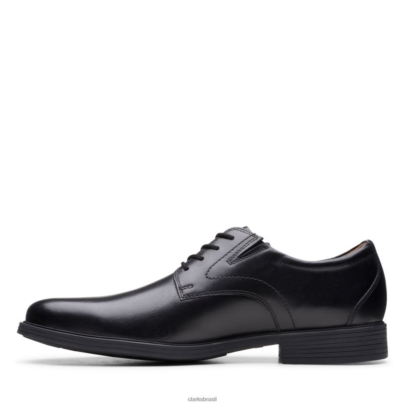 um perfil atemporal adicionado à coleção Clarks, este sapato masculino elegante com cadarços combina couro preto liso com um formato clássico de biqueira arredondada