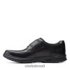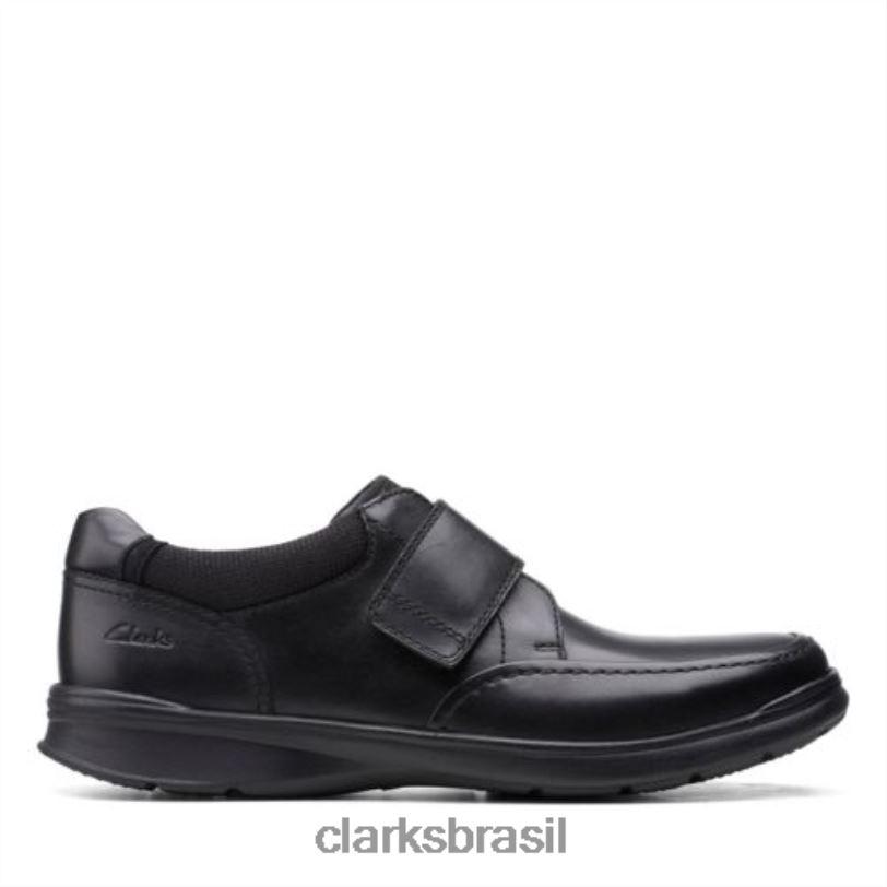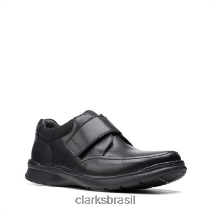 Clarks homens cotrell cinta clarks preto couro liso RJZRN4471 couro liso preto