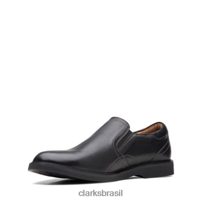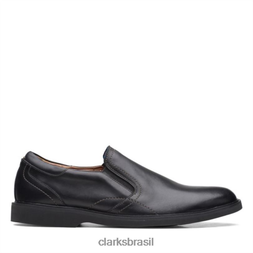 Clarks homens couro preto clarks malwood couro preto fácil RJZRN6843 couro preto