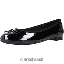 Clarks mulheres Clarks Couro Preto Feminino Alta Costura Bloom Ballet Flat RJZRN184 couro preto