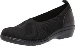 Clarks mulheres mocassim feminino estilo sashlyn preto combi clarks RJZRN2764 combinação preta