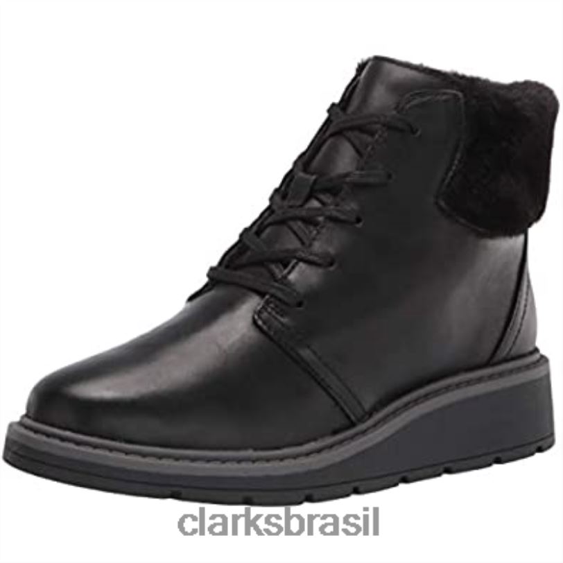 Clarks mulheres bota feminina andie go de couro preto à prova d’água Clarks RJZRN1348 couro preto impermeável