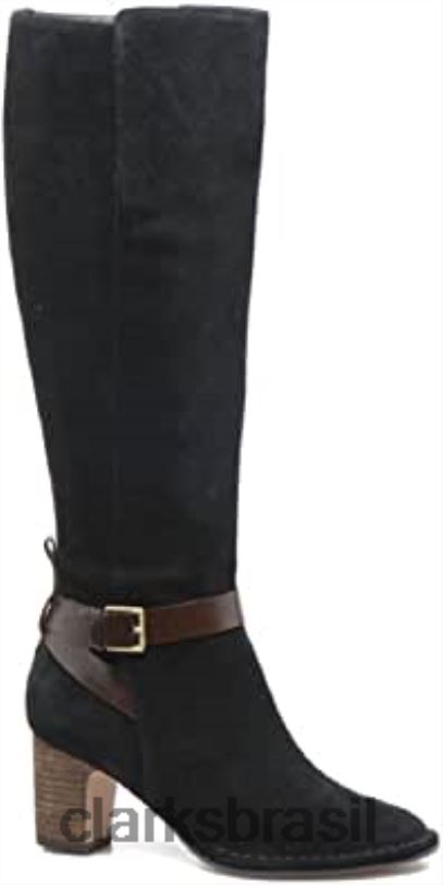 Clarks mulheres bota feminina clarks camurça preta hazen charm fashion RJZRN1835 Camurça preta