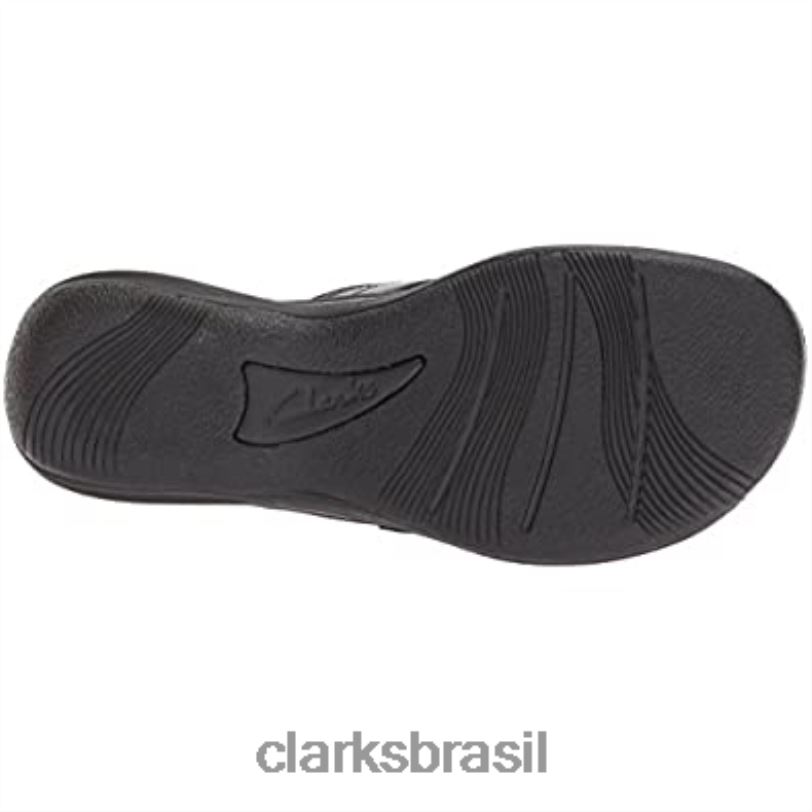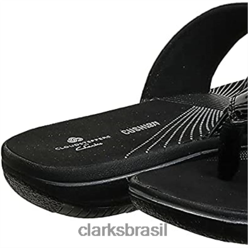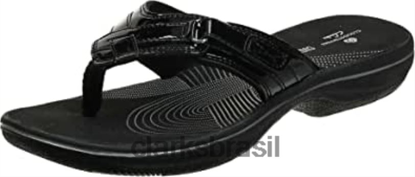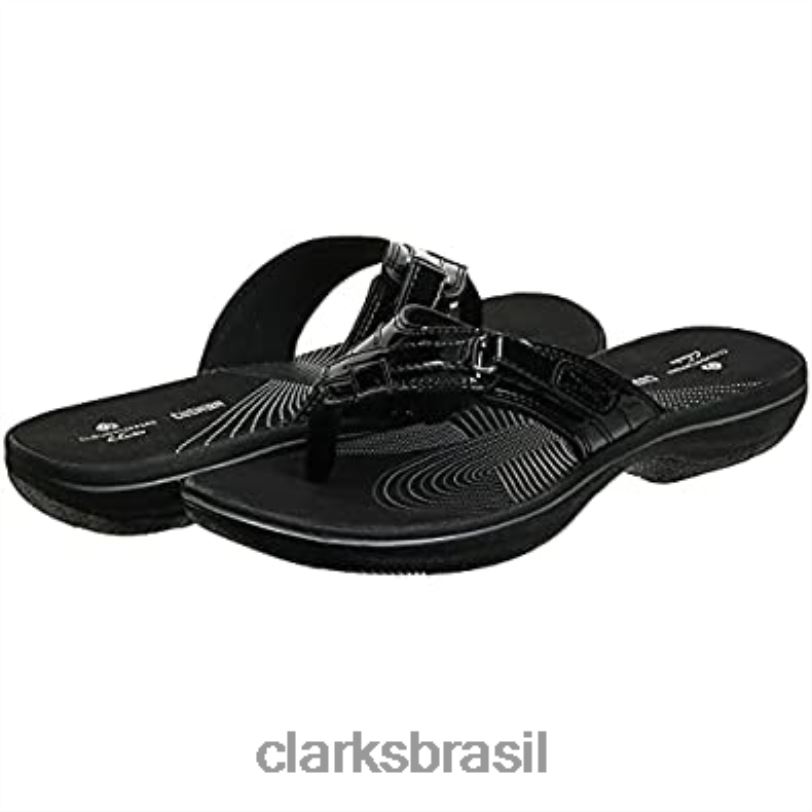 Clarks mulheres chinelos femininos pretos com patente sintética brisa mar clarks RJZRN2044 patente sintética preta