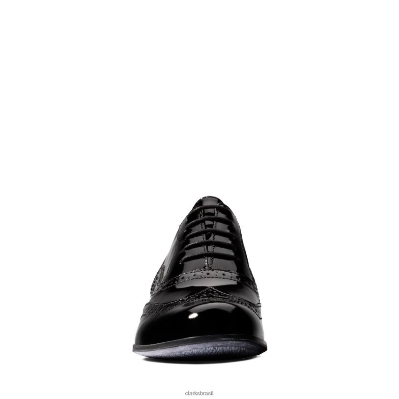nossos brogues femininos mais vendidos em um clássico preto patenteado. laços autênticos e detalhes perfurados adicionam ao visual premium que é finalizado com um salto folheado com efeito empilhado e com nossa exclusiva tecnologia Clarks Cushion Plus.